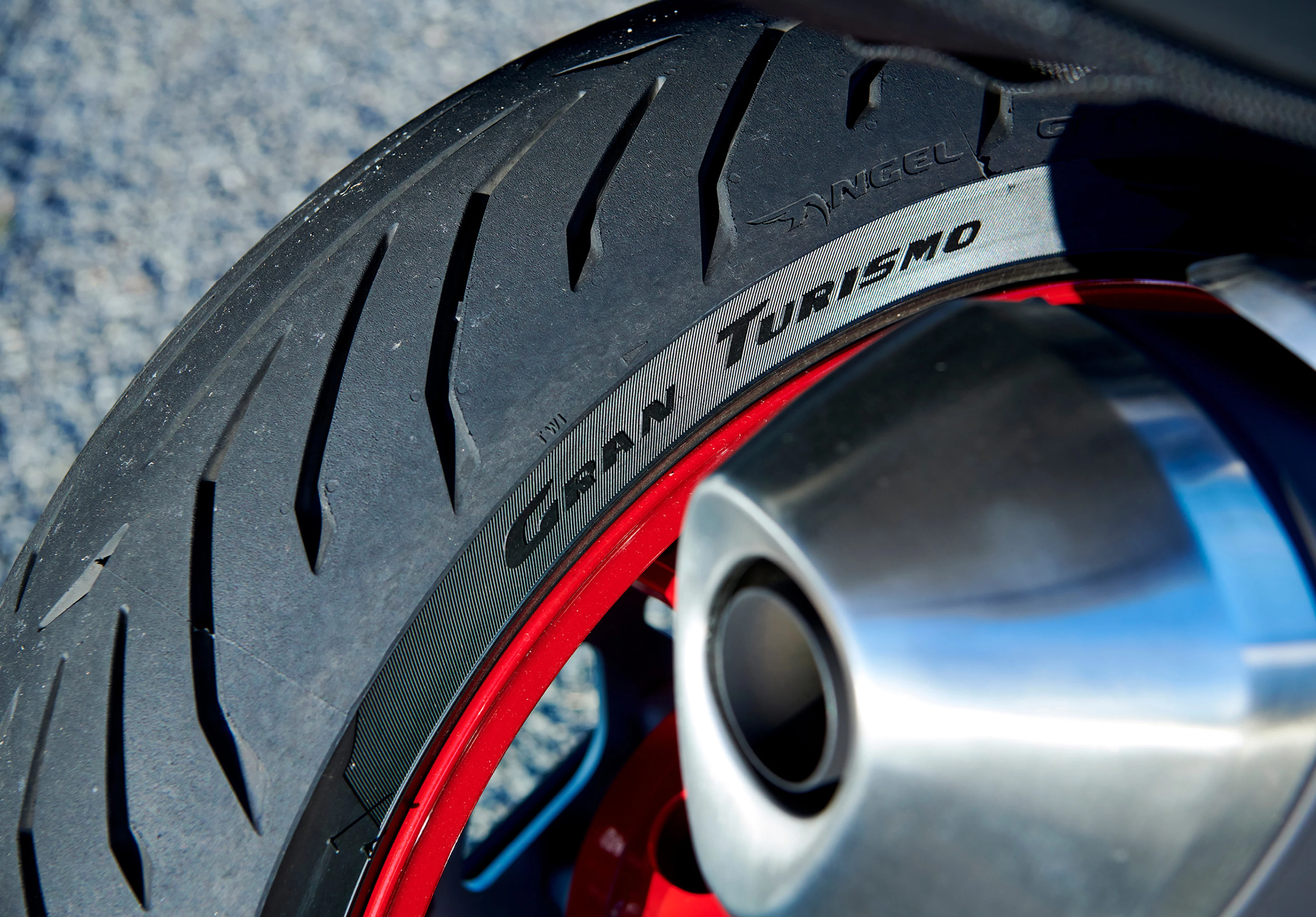 The SV-7GX’s stylish cast aluminium wheels feature an attractive new 10-spoke design, they’re also coated in contrasting colours that draw further attention to their attractive styling. 7GX uses Pirelli Angel GT II sport-touring radials for their blend of grip, stability, and long-term durability. These tyres also provide excellent wet and dry performance, and consistent handling across a broad range of road surfaces.