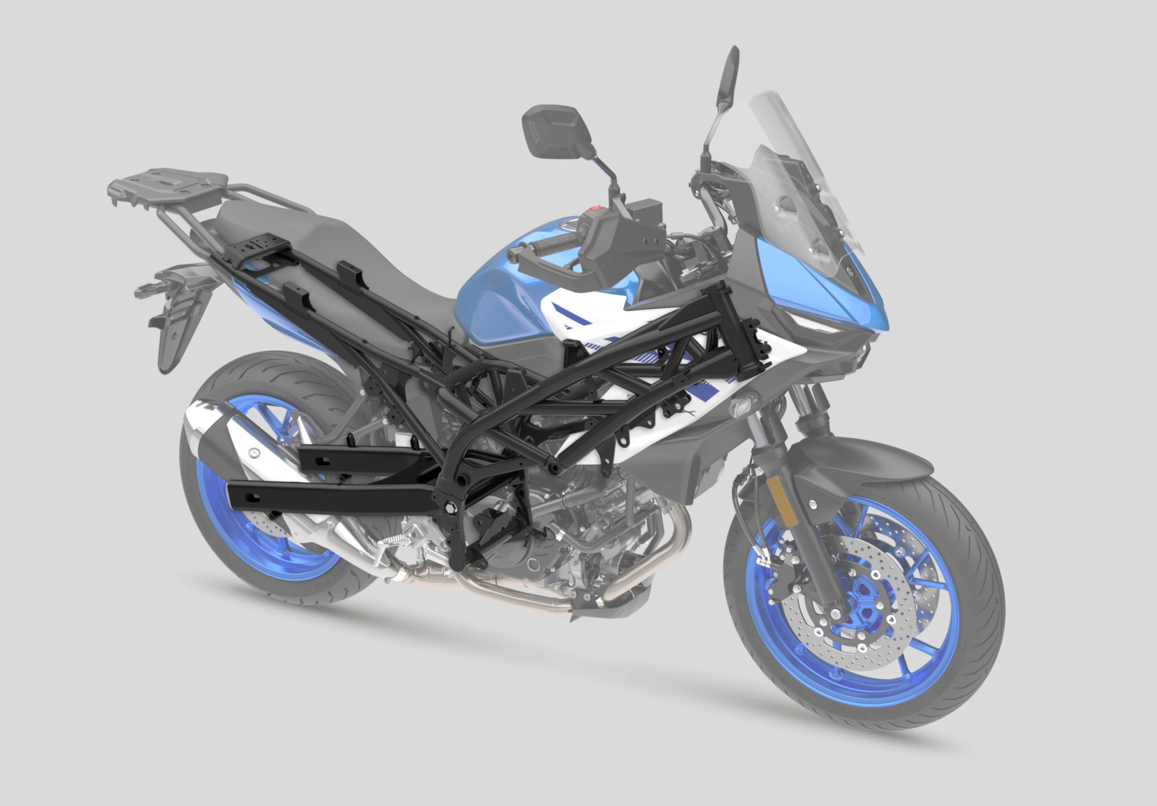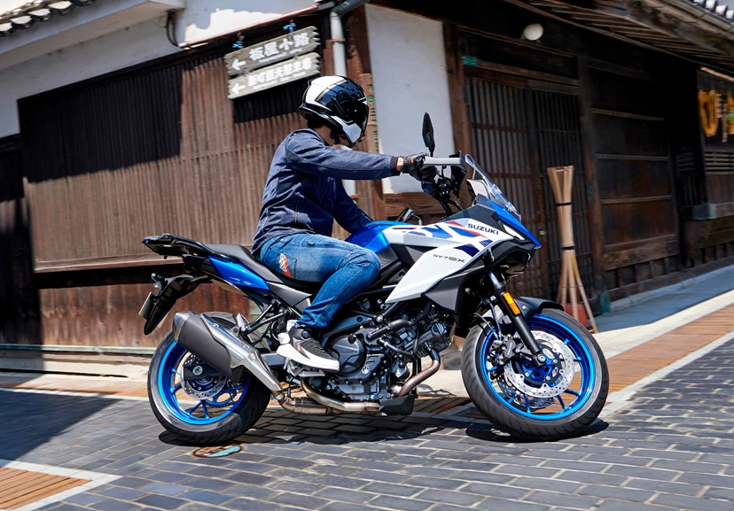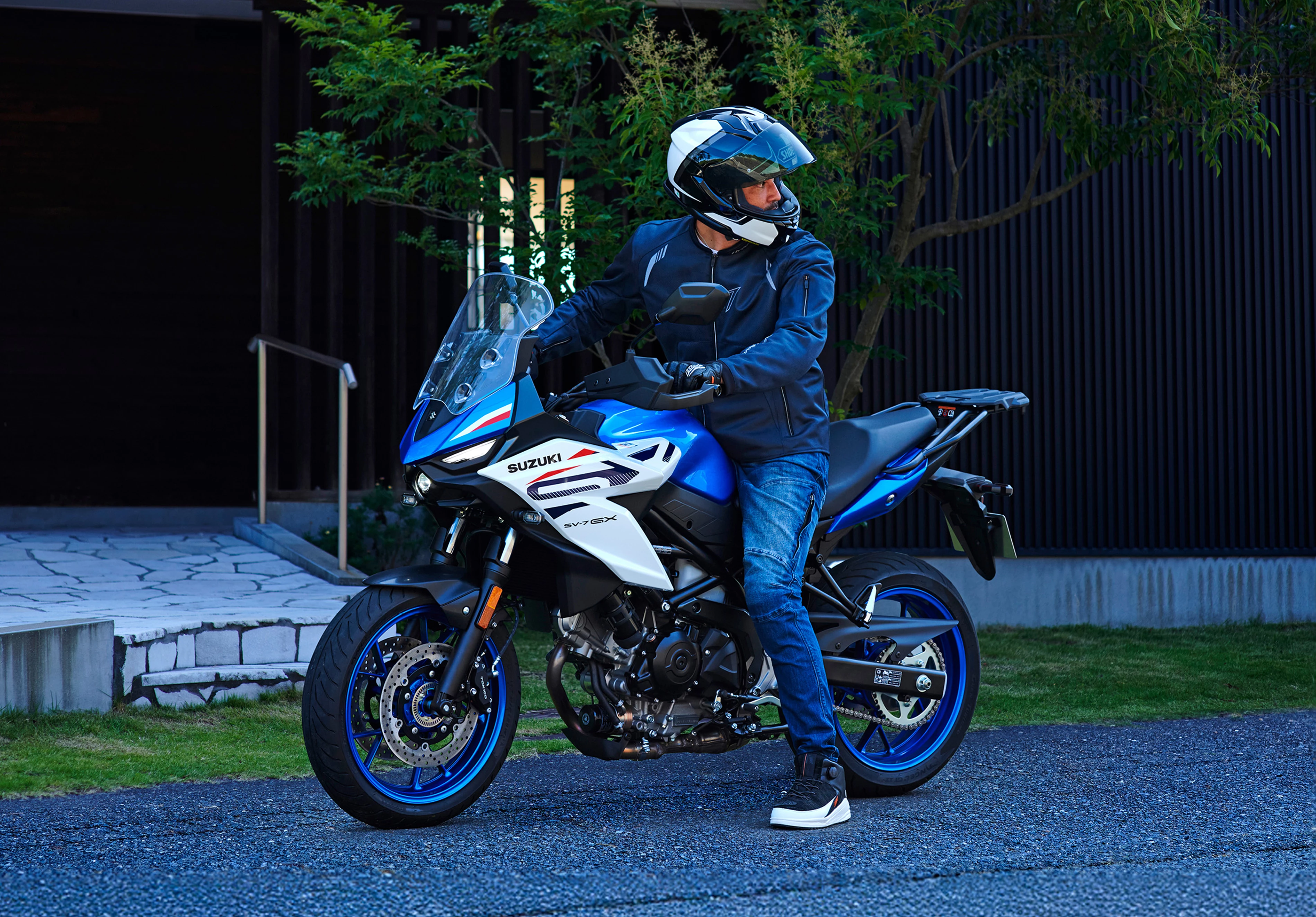 Along with its enhanced long-distance riding capability, the SV-7GX maintains a compact and manoeuvrable profile that makes low-speed rides and parking both supremely easy. Furthermore, the rear portion of its chassis has also been specially designed to accommodate not only an optionally available top case but also convenient pannier bags, with mounts reinforced to ensure long-term durability. From tight urban streets to open backroads, the SV-7GX delivers a grounded yet always exhilarating ride, confidence-inspiring, comfortable, and ready to adapt to whatever the road ahead may bring.