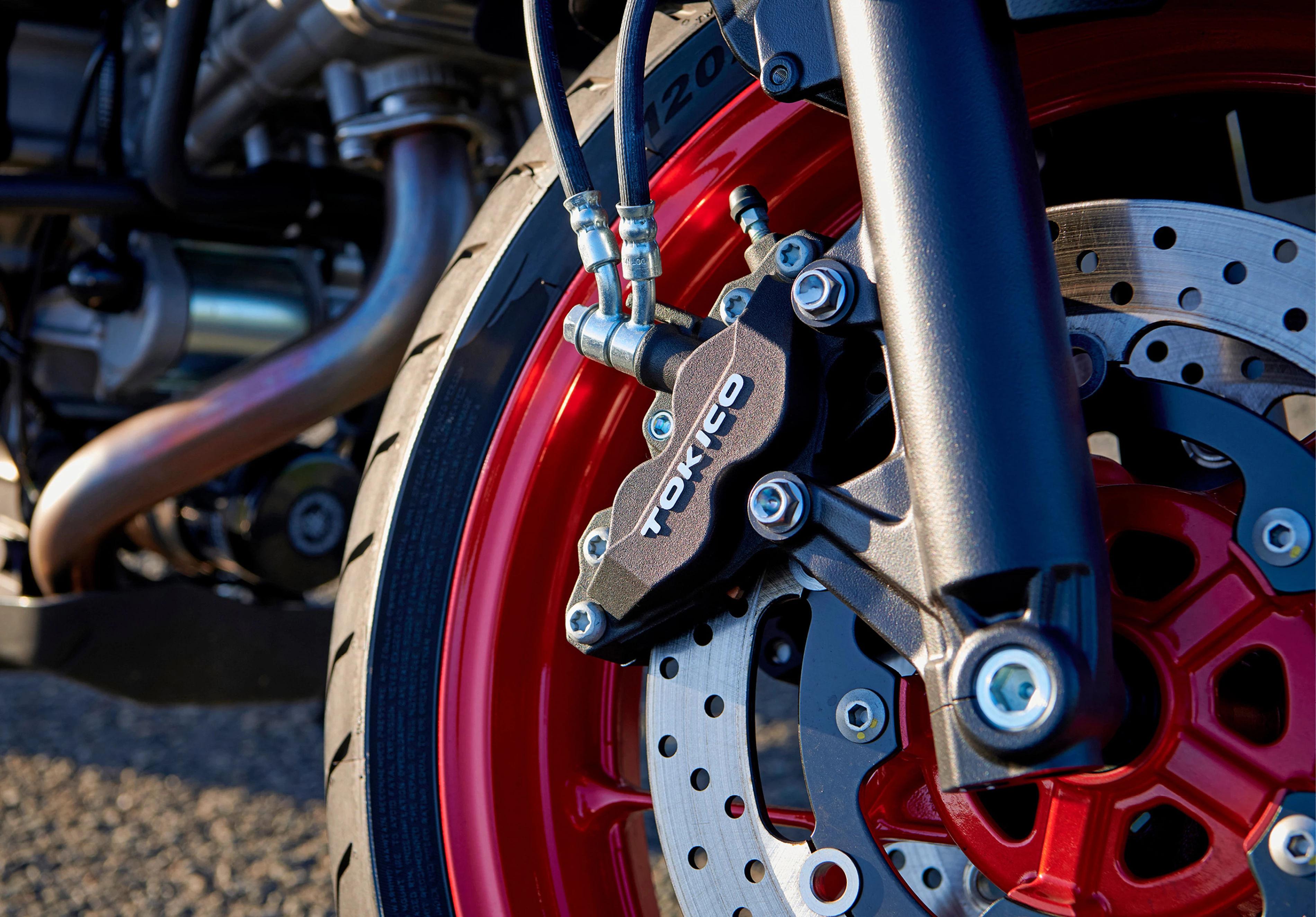 The SV-7GX features highly effective front 290mm dual floating discs with powerful 4- piston calipers that deliver strong, progressive stopping power and excellent lever feel. At the rear a single 240mm disc provides balanced, controllable braking. The SV-7GX’s Antilock Brake System1 contributes to more stable braking by preventing the wheels from locking under various road conditions.